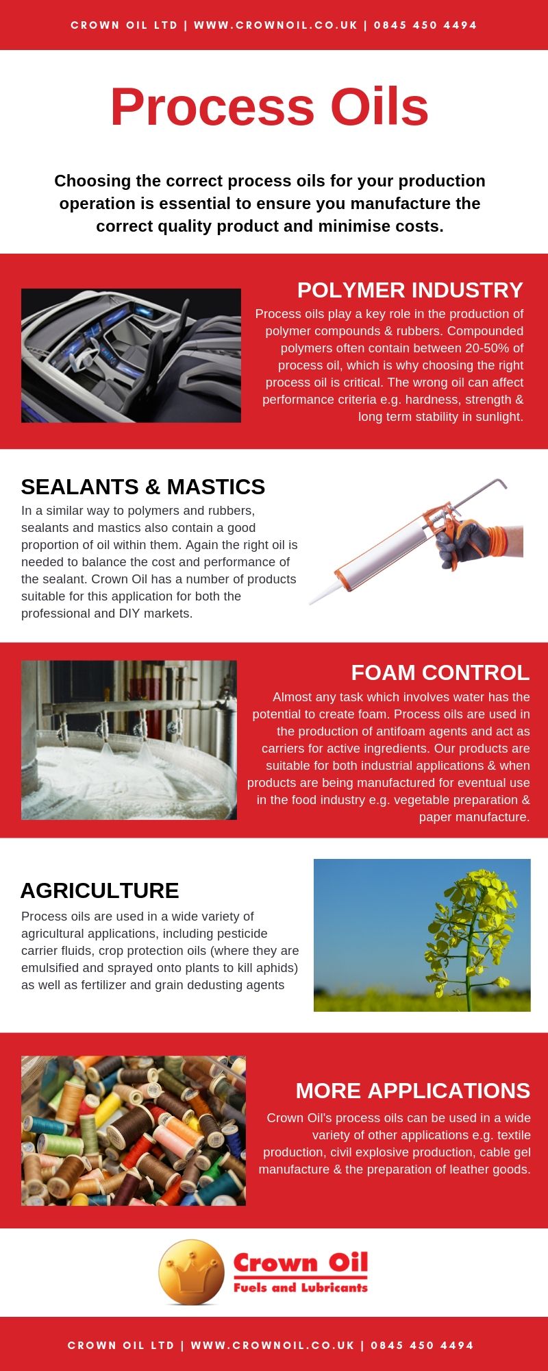 Process oils are used in a number of industries and applications; either as a raw material component or to help with processing. At Crown Oil, we have over 75 years of experience in the lubricants business. As so, we recognise the vital role process oils play in your business operations.